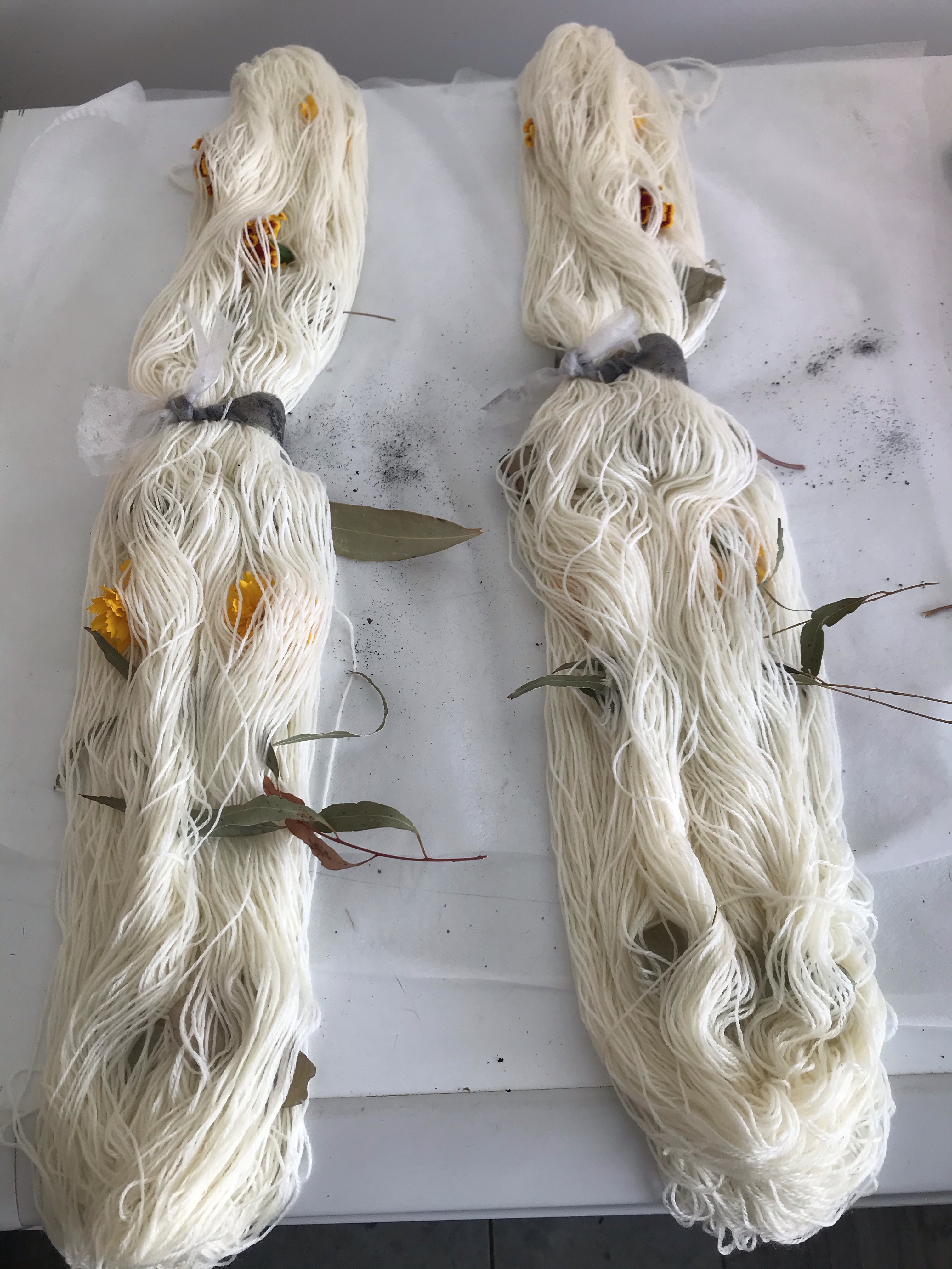 Wherever possible dye brews are made with what’s available locally, timing foraging and picking so that birds and bees have first go.
